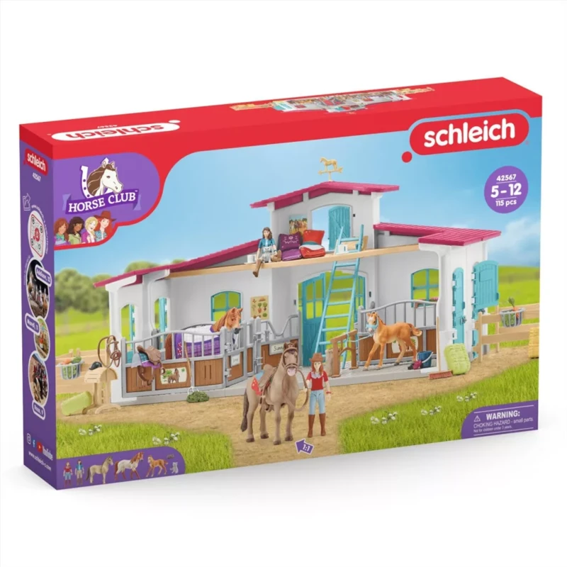 A Schleich 42567 lovas központ lovakkal és felszerelésekkel egy részletgazdag játék készlet gyerekeknek, amely élethű figurákkal, istállókkal és rengeteg kiegészítővel kínál kreatív lovas szerepjátékot. Ez a Lakeside lovasközpont több lóval, mozgalmas kiegészítőkkel és mozgatható figurákkal hosszú órákra leköti a kis lovas rajongókat – tökéletes ajándék ötlethez is.