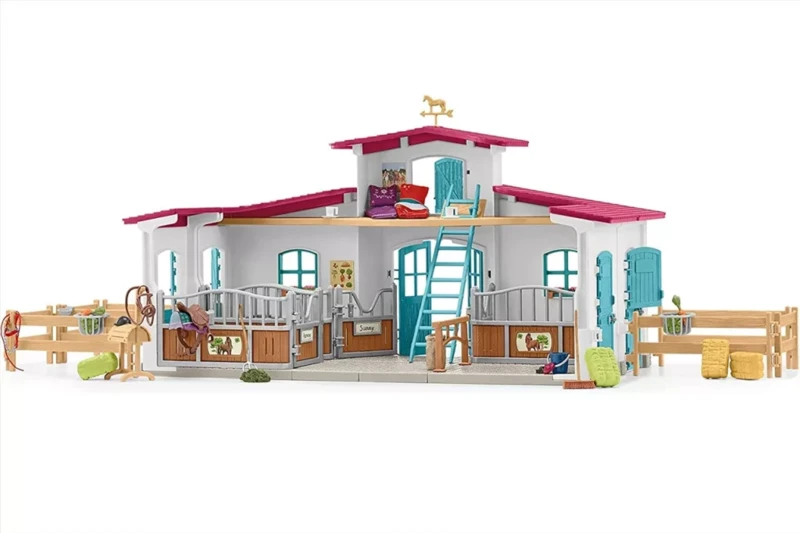 Az istálló kialakítása lehetővé teszi a lovak etetését, ápolását és pihentetését, míg a tó melletti környezet még élethűbb játékélményt biztosít. A mozgatható elemek, nyitható ajtók és cserélhető kiegészítők segítik a fantázia kibontakozását, miközben fejlesztik a szerepjátékhoz kapcsolódó készségeket, a kreativitást és a finommotorikát.