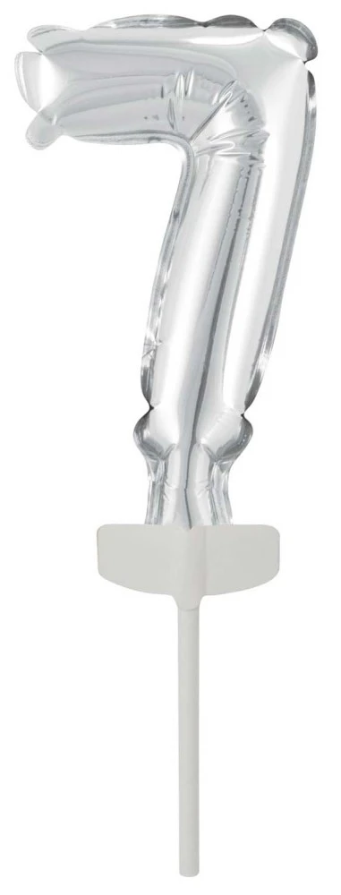 Silver, Ezüst 7-es szám fólia lufi tortára 13 cm