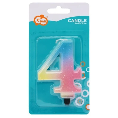 Színes 4-es Pastel Ombre számgyertya, tortagyertya