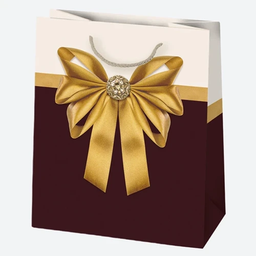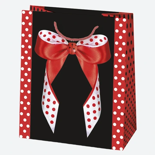 Színes Bow papír ajándéktasak, ajándékzacskó 19x23x10,5 cm
