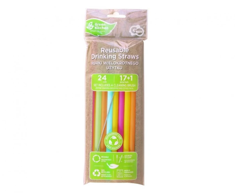 Színes Colors műanyag újrafelhasználható szívószál 17 db-os + kefe