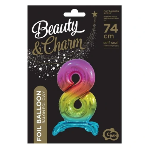 Színes Rainbow 8-as szám fólia lufi talppal 74 cm