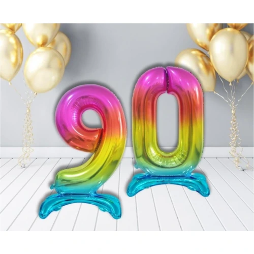 Színes Rainbow 9-es szám fólia lufi talppal 74 cm