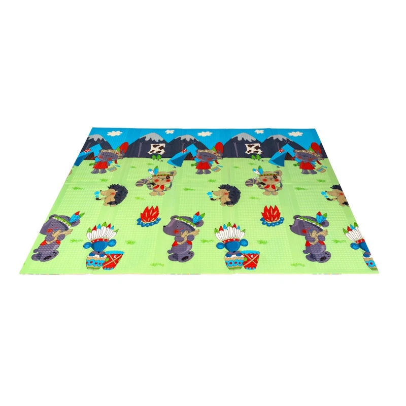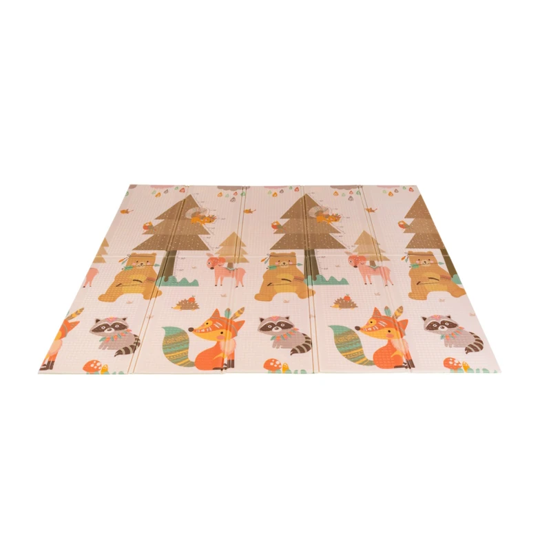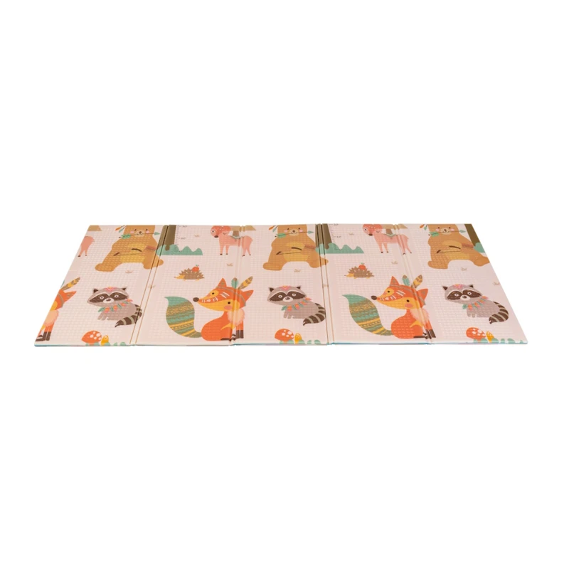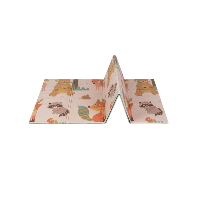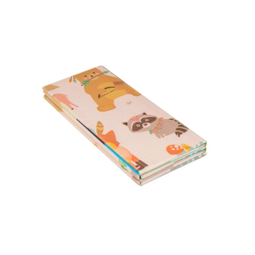 A kétoldalú összehajtható szőnyeg színes és változatos mintákat és textúrákat kínál, amelyek segítik fejleszteni a babák látását és tapintását. Tele van állatok képeivel, amelyek támogatják a legfiatalabb felhasználók intellektuális és motoros fejlődését.