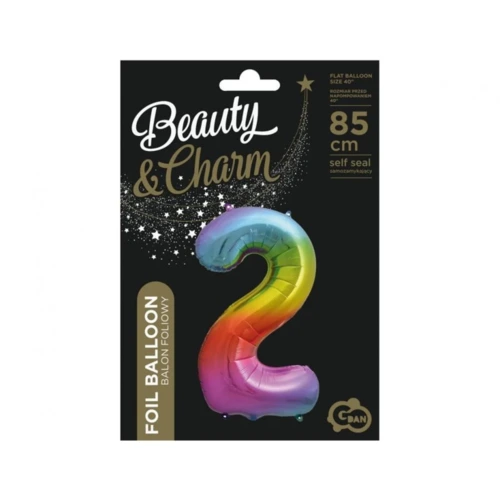 Szivárvány Rainbow 2-es szám fólia lufi 85 cm