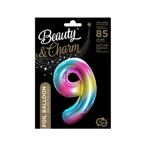 Rainbow, Szivárvány 9-es szám fólia lufi 85 cm