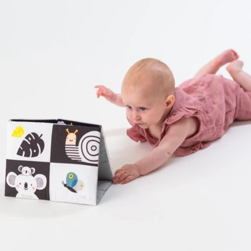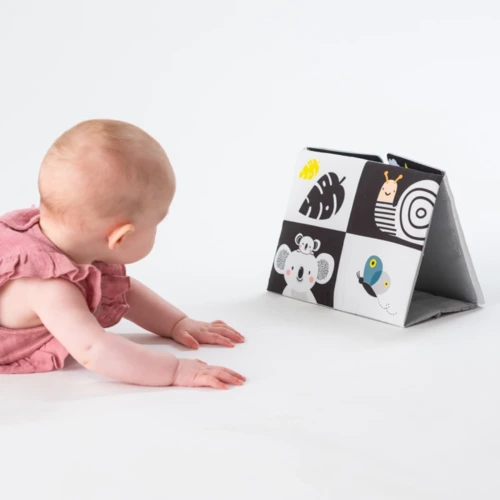 A Taf Toys Tummy-time tükrös bébikönyve hatalmas bababiztos tükörrel, nagy kontraszttal és színes illusztrációkkal készült, amelyek serkentik a baba érzékszerveit és érzelmi intelligenciáját.