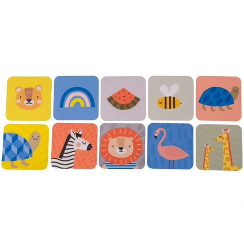 A kártyák használata serkenti a vizuális memória, a finom-motorika, az önbizalom és a tárgyfelismerés fejlődését. A kétoldalas, matt fóliázás csökkenti a tükröződést, a lekerekített sarkok biztonságosak, és a környezetbarát szójafesték szagtalan. A készlet BPA-, PVC- és ftalátmentes, így teljesen biztonságos.