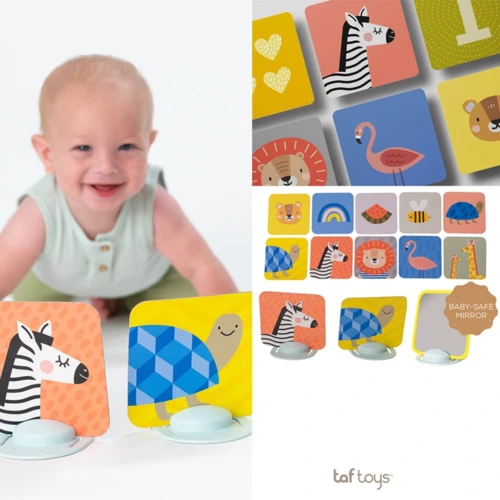 Taf Toys Tummy-time játékkártyák – 30 képes, bababiztos kártya, bababiztos tükör és kártyaállvány, amely fejleszti a baba vizuális észlelését, memóriáját és finom-motorikáját. BPA-mentes, újszülött kortól 36 hónapos korig.