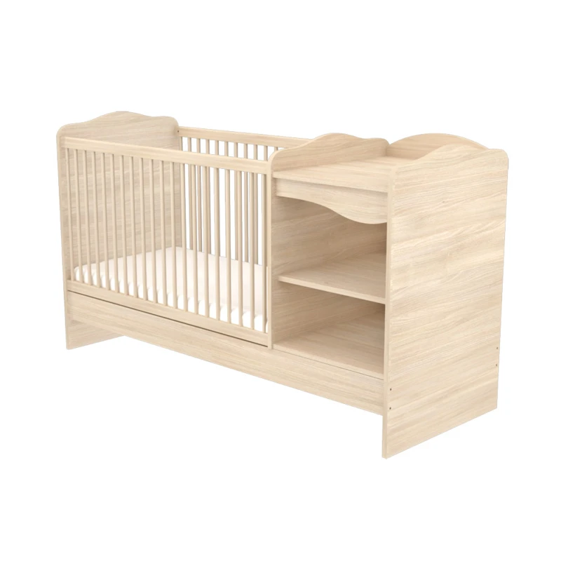 A kiságyhoz tartozik egy praktikus pelenkázó komód, amely később önálló nyitott éjjeli szekrénnyé alakítható. A kiságy heverővé történő átalakítása során egy modern ifjúsági ágyat kapunk, így a bútor együtt nő a gyermekkel.
