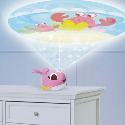 Ez a kedves hordozható bálna formájú kivetítő univerzális rögzítővel rendelkezik. Segítségével könnyen hozzá csíptethetjük a kiságyhoz vagy az utazóágyhoz. A klip eltávolításával pedig elhelyezhetjük egyenes felületen is, mint az asztal vagy polc. A vetítő kedves képeket vetít, amit aláfestő zene kísér. állatkákról. A 30 percig hallható zene erőssége állítható vagy akár ki is kapcsolható.