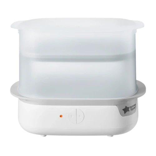 A Tommee Tippee Super Steam egy gyors, hatékony és biztonságos elektromos gőzsterilizáló, amely segít a szoptatási és etetési eszközök, például cumisüvegek, cumik és mellszívó alkatrészek higiénikus tisztán tartásában. Használatával nincs szükség időigényes forralásra vagy vegyszeres sterilizálásra, mivel a 100%-ban természetes gőz elpusztítja a baktériumok 99,9%-át, még a nehezen elérhető helyeken is.