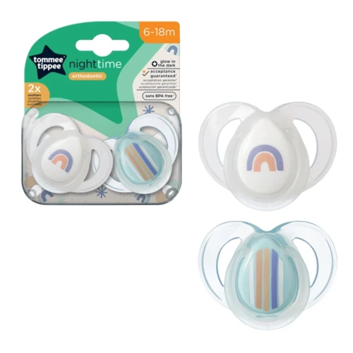 A Tommee Tippee CTN Night játszócumi 2 db – 6-18 hónapos babáknak ideális választás a nyugodt nappali és éjszakai használathoz. A Tommee Tippee cumik a legszigorúbb biztonsági szabványoknak megfelelve készülnek, és kifejezetten úgy lettek tervezve, hogy támogassák a baba szájüregének és fogazatának egészséges fejlődését.