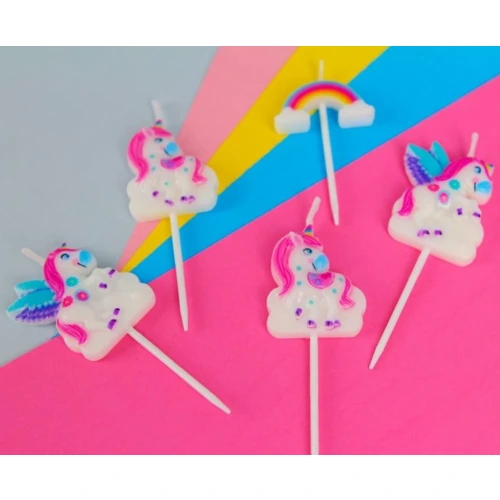 Unikornis Rainbow tortagyertya, gyertya szett 5 db-os