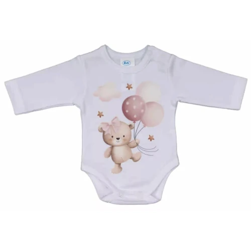 Rövid ujjú, vállon békanyakas, lábak között patentos megoldás a könnyebb használatért.