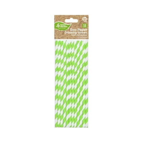 Zöld Green Stripes rugalmas papír szívószál 12 db-os