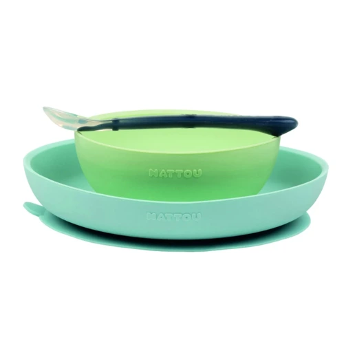 A termékek élelmiszerre biztonságos szilikonból készültek, amely nem mérgező és törésálló. Kisgyermekek számára a szilikon természetesebb, mint a mûanyag vagy a fém. A gyerekek gyakran a szájukkal fedezik fel a világot, az edényekkel való játék és az azokba való harapás során nincs sérülésveszély, hiszen rugalmas, puha, mégis nagyon strapabíró anyagból készültek. Erős csúszásgátló tapadókorong biztosítja, hogy a tálat és a felosztott tányért az asztalon vagy az etetőszék tálcáján tartsa, és így megakadályozza a felborulást vagy leesést, hogy a játékosabb gyerekek nehezebben tudják felvenni ezeket az edényeket és ledobni a földre.