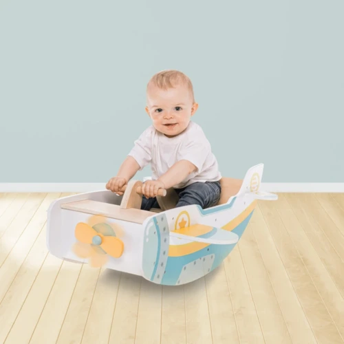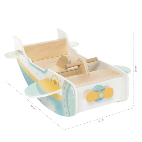 Felszállásra kész repülőgép, amely órákon át szórakoztatja a gyerekeket. A biztonságos lengést az elülső részben található kormány-kapaszkodó biztosítja. A széles ülés háttámlával rendelkezik, ha a gyermek csak finoman akar ringatni saját súlyával. A repülő alakú hinta minőségi, tartós bükkfából készült. Minden felhasznált festék egészségre ártalmatlan és vízbázisú.