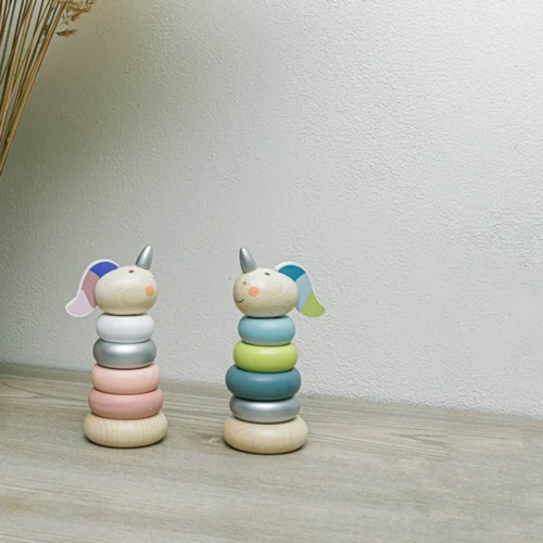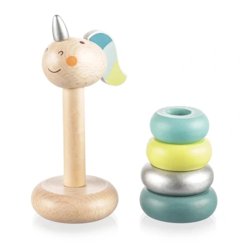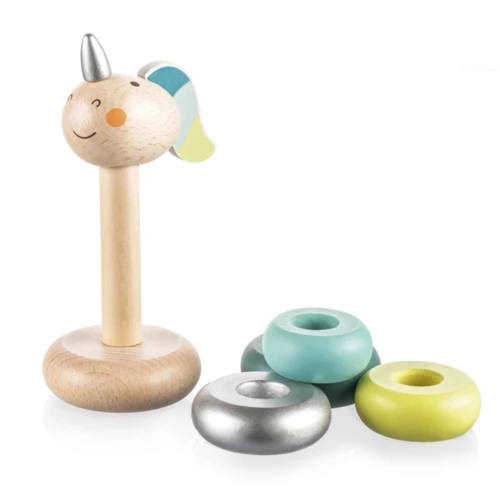 Az egyszarvú szett különböző méretû fadarabokból áll, melyek tetszés szerint kiszedhetők és visszarakhatók. Az egyszarvú dizájn vonzza a gyerekeket, és egyúttal segíti őket a motoros készségek és a térbeli gondolkodás fejlesztésében játék közben. A gyermek könnyen megtanulja az alapvető számolást és a méretfelismerést is. A játék kiváló minőségû és strapabíró bükkfából készült, az összes használt szín vízbázisú.