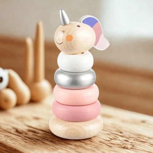 Az egyszarvú szett különböző méretû fadarabokból áll, melyek tetszés szerint kiszedhetők és visszarakhatók. Az egyszarvú dizájn vonzza a gyerekeket, és egyúttal segíti őket a motoros készségek és a térbeli gondolkodás fejlesztésében játék közben. A gyermek könnyen megtanulja az alapvető számolást és a méretfelismerést is. A játék kiváló minőségû és strapabíró bükkfából készült, az összes használt szín vízbázisú.