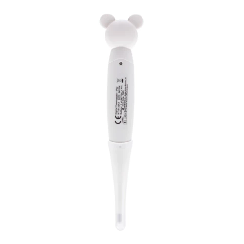 32 és 43 Celsius-fok között 0.1 fokos pontossággal mér, ezért ez egy ideális választás a pontos mérések érdekében. Alkalmazható végbélben, hónaljban, vagy szájban történő mérésekhez, ezért egyaránt használható felnőttek és gyerekek által is. A hőmérő hanggal jelzi ha véget ért a mérés, vagy ha magas hőmérsékletet érzékel, lehetővé téve a gyors reagálást. A mérés 30 másodperc alatt történik, ami nyugtalan gyerekek mellett különösen hasznos. A vízálló konstrukció biztosítja a biztonságos és könnyû tisztítást, a rugalmas szilikon vég pedig kényelmes és higany mentes.