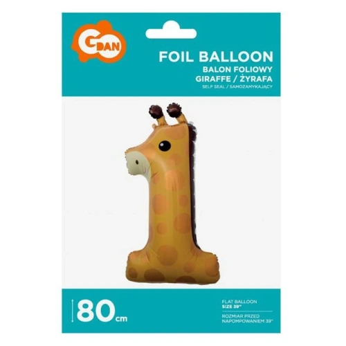 Zsiráf 1-es Giraffe szám fólia lufi 80 cm